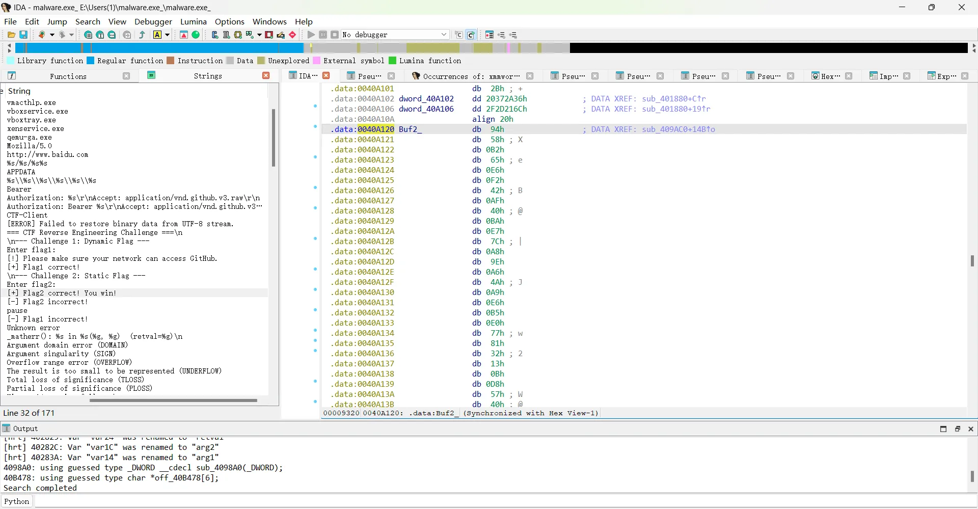 # 目标密文数据 (Buf2_ at 0x40A120)
